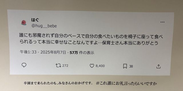 本企画は、名前も知らない誰かの仕事に対する感謝を集め、可視化する取り組みとして継続してきたプロジェクトの延長にある。特に保育園に関わる職種に対する感謝の声が多く寄せられていた背景があり、子どもを預ける保護者のリアルな想いを社会に広げることを狙ったものだ。卒園という節目において、日常の中で伝えきれなかった感謝を形にする意図がある。