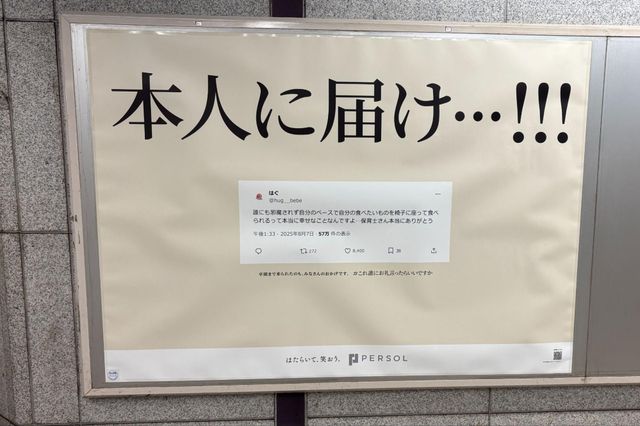 広告では、実際にSNSに投稿された保護者の言葉をもとに、“名もなきアカウント”によるメッセージとして表現した。掲出場所はJR三鷹駅や川崎駅、大手町駅など、駅中・駅近に保育施設が存在する24駅に限定されており、保育園に子どもを預ける保護者と保育関係者の双方が日常的に行き交う導線上に配置された構成となっている。コピーは「本人に届け…!!!」や「ありがとう……ありがとう…!!!」といったシンプルかつ感情に訴える表現を採用し、視覚的にも強い印象を残す設計だ。
