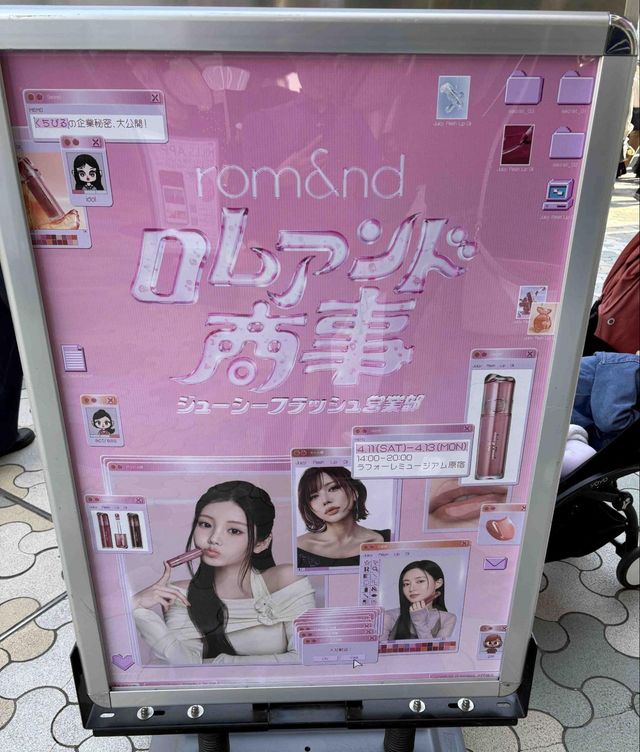 韓国コスメブランド「rom&nd(ロムアンド)」は、新商品「ジューシーフラッシュリップオイル」の発売を記念し、体験型ポップアップイベント「ロムアンド商事〜ジューシーフラッシュ営業部〜」を2026年4月11日から13日まで、ラフォーレミュージアム原宿で開催した。あわせて渋谷駅では大型広告も展開し、リアルイベントと広告を連動させたプロモーションを実施した。