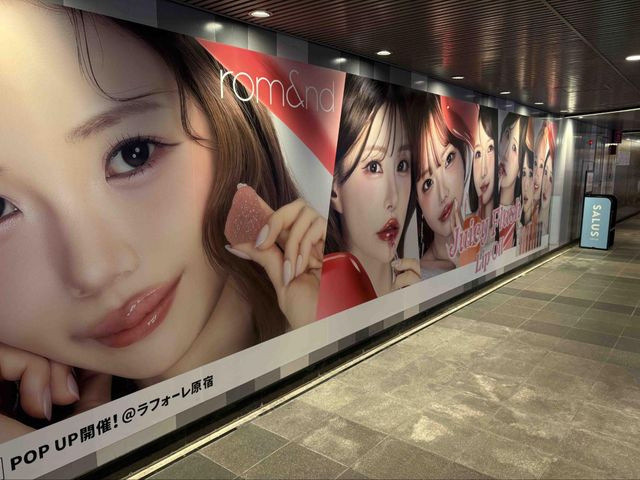 コスメ販促を体験消費として再設計した施策であり、単なるタッチアップでは届きにくい新商品の質感価値を、「ロムアンド商事」への入社という没入型ストーリーに乗せて理解させた点が特徴である。渋谷駅の大型広告で広く認知と興味を喚起し、来場先の原宿ポップアップで診断、試用、撮影、購入まで深く接触させる二段構えになっており、認知から体験、購買までの流れを作っている。