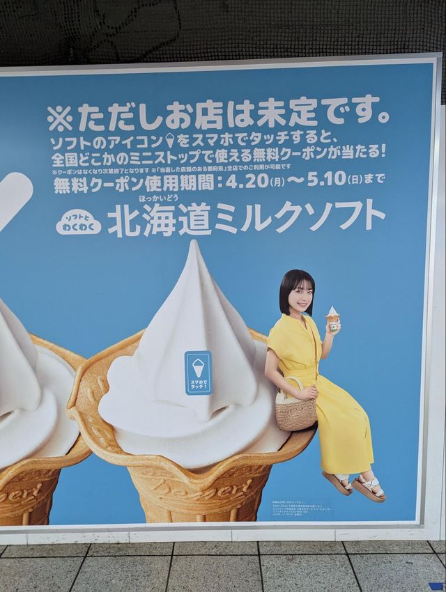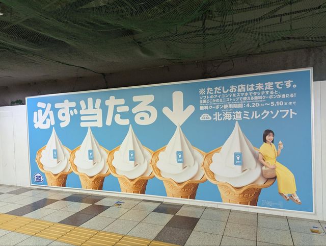 ミニストップは、主力商品「北海道ミルクソフト」のプロモーションとして、新宿駅メトロプロムナードにおいて大型交通広告を展開した。
