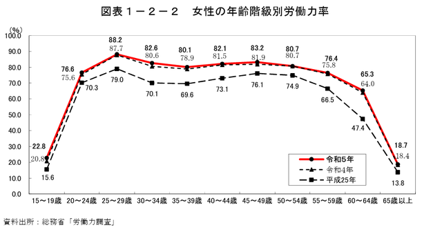 厚生労働省が発表している「令和5年版働く女性の実情」を見ると、30歳~40歳の女性の労働率が一度落ち込んでいます。調査結果からも、F2層にあたる30代後半~40代の女性は家事や育児に専念している人が多いのがわかります。