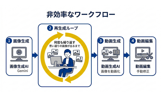 最近ではChatGPTやGoogle Geminiを使ってAIで画像や動画を作る方も増えてきました。しかし、実務で使おうとすると、以下のような非効率なループに陥っていませんか?