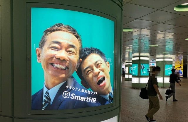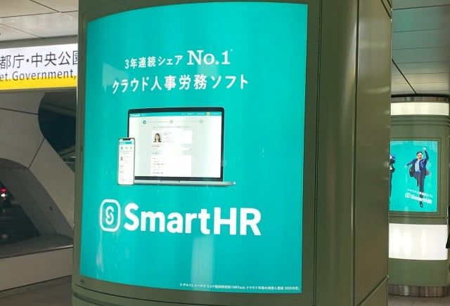 クラウド人事労務ソフト「SmartHR」の交通広告がJR新宿駅西口の地下広場をジャックしています。