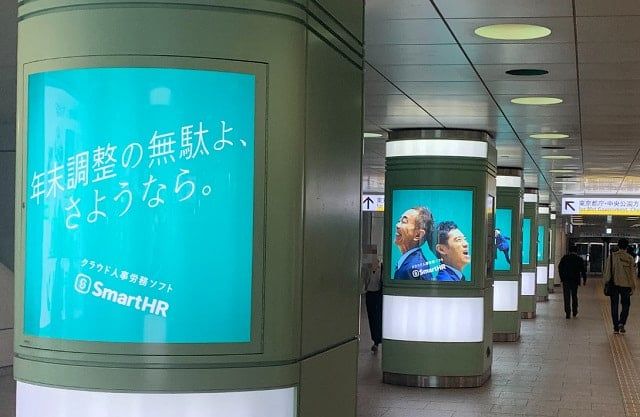 クラウド人事労務ソフト「SmartHR」の交通広告がJR新宿駅西口の地下広場をジャックしています。