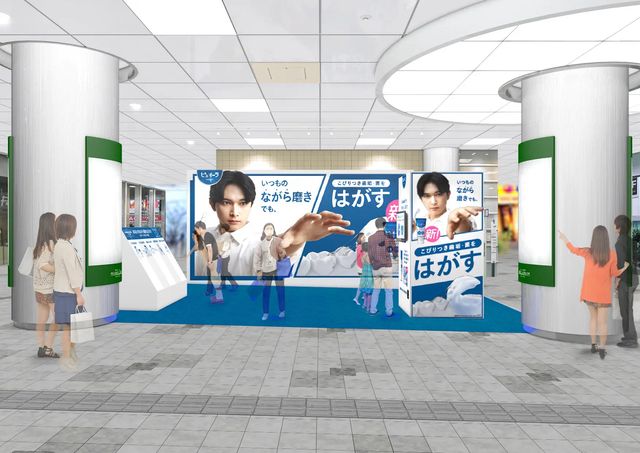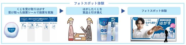 展開するポップアップスペースについて、新ピュオーラの特長である「いつもの『ながら磨き』でも歯垢や菌を『はがす』」という特徴を、来場者に楽しみながら体験してもらえるよう工夫を凝らした。具体的には、現品が当たる「"はがす"くじ」の実施や、来場者の歯磨き習慣を調査する「"ながら磨き"実態調査」コーナーを設置。さらに、CMキャラクターを務める吉沢氏のフォトスポット用パネルも展示されたそうだ。