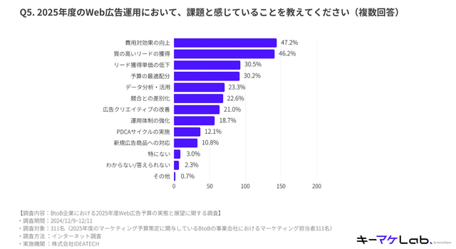 半数近くが「費用対効果の向上」と「質の高いリード獲得」が課題
