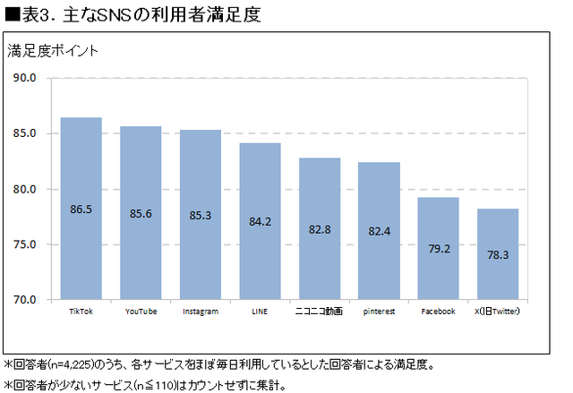 主要SNSの満足度、TikTokがトップに