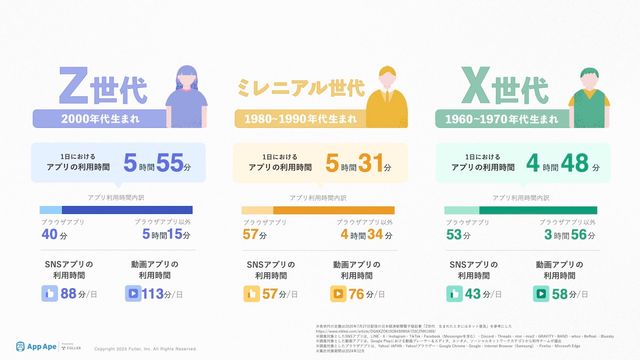 世代間での利用傾向に明確な差 Z世代のアプリ利用時間が最長に