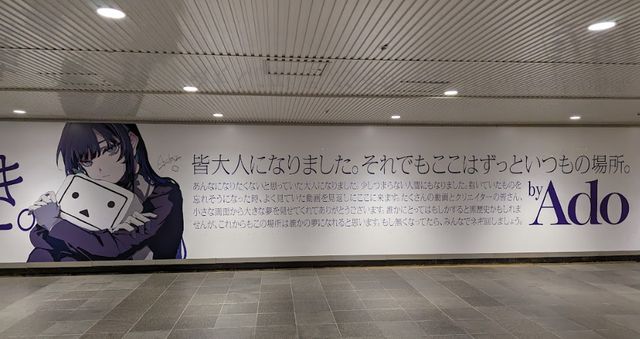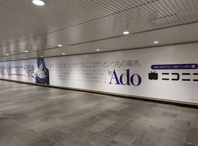 ニコニコ動画を運営する株式会社ドワンゴが掲出した、歌い手Adoさんとのコラボ広告。こちらの広告では、Adoさんから見たニコニコ動画の魅力や熱量が伝わる内容で構成されており、「みんなでネギ回しましょう。」など一部ファンにしか分からない表現を交えつつも、愛を強く感じる内容となっていました。