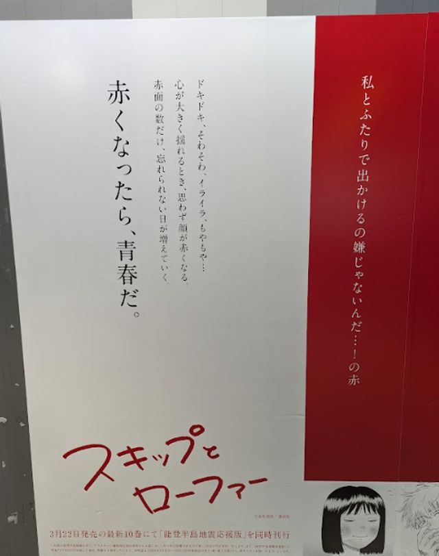 青年漫画誌「月刊アフタヌーン」で連載中「スキップとローファー」最新10巻の発売タイミングで実施された広告。広告では、作中に登場する「赤面シーン」を37種類の赤色で演出。「赤くなったら、青春だ。」というキャッチコピーとともに、恋愛のドキドキや嫉妬、怒りなどネガティブな感情を表現していました。