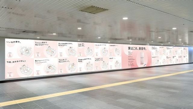アース製薬がナイトウェルネスブランド「BARTH」の入浴剤新商品キャンペーン「実はこれ、美容中。」を展開し、東急田園都市線渋谷駅にピールオフ広告を掲出してサンプル約1万個を配布しました。忙しい20~40代女性をターゲットに、バスタイムの多様なシーンで「浸かるだけで美容になる」というコラーゲンやヒアルロン酸配合商品の特徴を、24種の共感コピーで「私ごと化」し、春夏でも入浴習慣を維持させることを狙いとしています。