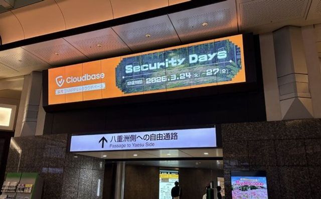 Cloudbase株式会社は、国産クラウドセキュリティ製品「Cloudbase」のプロモーションとして、JR東京駅構内で大型デジタルサイネージとホームドアシート広告を展開しました。セキュリティ担当者を「勇者」、製品を「武器」に見立てたRPGコンセプトで、3月開催のセキュリティイベント来場を促進する戦略的なOOH広告事例です。