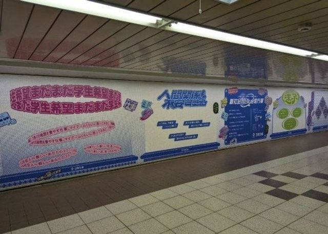 日本生命が新宿駅でピールオフ広告を展開、新社会人の不安に「ブルー処方箋」