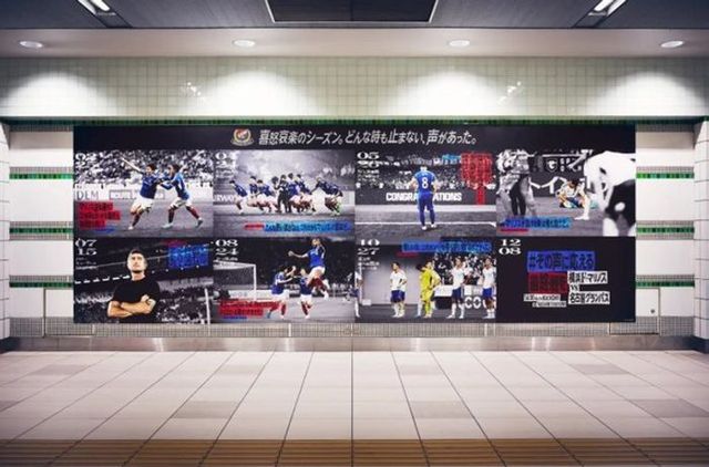 横浜F・マリノスがシーズン最終戦に向け、TBWA HAKUHODOと協力してサポーターの声を集めた駅広告キャンペーンを展開した。チームカラーのトリコロールでハイライトされたSNS投稿と試合シーンを組み合わせ、横浜駅や新横浜駅に掲出し、激動のシーズンを共に戦ってきたサポーターとの絆を表現している。