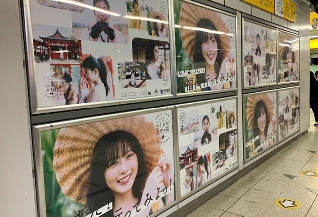 福岡県がコロナで落ち込んだ観光需要の回復を目指し、「福岡の避密の旅」キャンペーンの駅貼りポスター広告をJR渋谷駅構内に掲出しました。県出身の女優・今田美桜さんが福岡県内の名所を紹介し、割引宿泊券などの販売を促進する内容となっています。