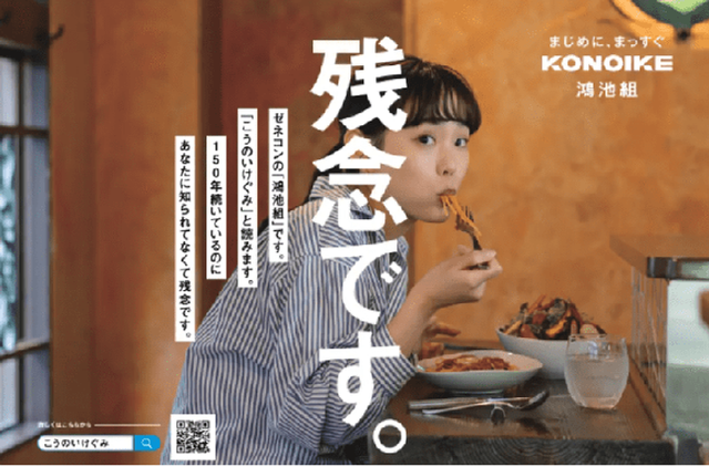 150年の歴史を持つゼネコン企業・鴻池組が、「残念です。」というストレートなメッセージを掲げた企業広告を展開しています。東京メトロ主要駅52カ所とサイネージに出稿され、社会に知られていない自社の強みや技術を伝えることで、認知向上を目指しています。