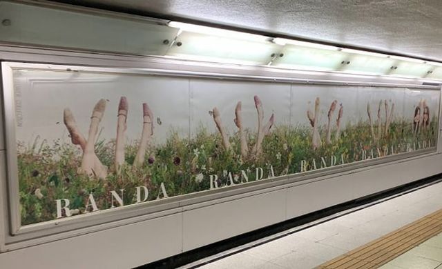 レディースシューズブランド「RANDA」は、JR新宿駅構内にフラワーコレクションのポスター広告を掲出しています。淡いカラーの華やかなシューズを履いた足を野に咲く花に見立てた、インパクトのあるユニークなビジュアルで多くの利用者の関心を引く広告キャンペーンとなっています。