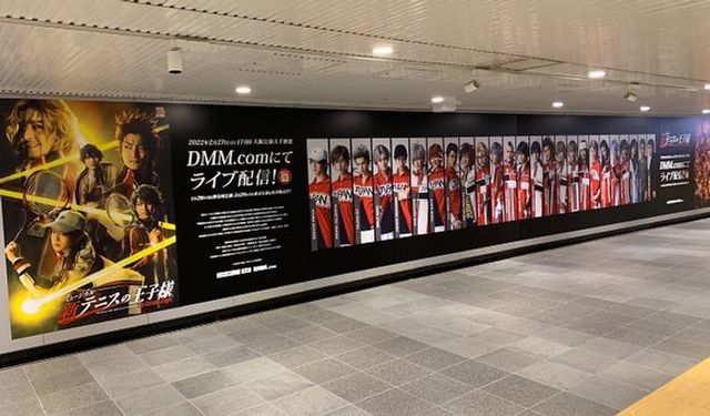 ミュージカル「新テニスの王子様 The Second Stage」が、渋谷駅と池袋駅の駅構内に大型広告を掲出しました。大阪公演千秋楽のライブ配信をPRするこの広告は、B0サイズ30枚の巨大ボードで駅利用者に強くアピールしています。