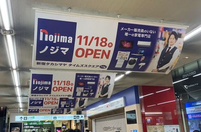 家電量販店ノジマ、新宿駅に新店舗のフラッグ広告を掲出