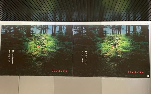 三和酒លិ社の麦焼酎「いいちこ」が、2021年クリスマスシーズンに渋谷駅など都内の駅構内で駅貼りポスター広告を展開しました。森の中のクリスマスツリーと「灯りをともして待っています。」というキャッチコピーで、ロングセラー商品の季節感を表現した個性的な広告となっています。
