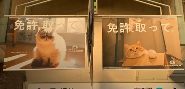 レインボーモータースクール和光、高田馬場駅に猫がデザインされたフラッグ広告掲出