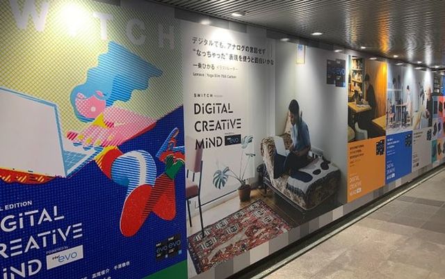 雑誌「SWITCH」とintelが渋谷駅・新宿駅にコラボ広告を掲出しました。クリエイターの創作現場を取材した特別冊子のPRとして、駅構内の大型ポスターで「インテル Evo プラットフォーム」対応ノートPCを紹介しています。