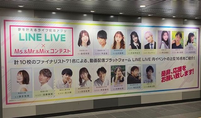 LINE株式会社は、ライブ配信プラットフォーム「LINE LIVE」内で開催されるイベント「Ms.&Mr.&Mix.コンテスト」をPRするため、東急田園都市線渋谷駅の駅貼りポスター広告を掲出しました。改札前の大型ボードに設置することで、多くのユーザーへ効果的にアプローチしています。