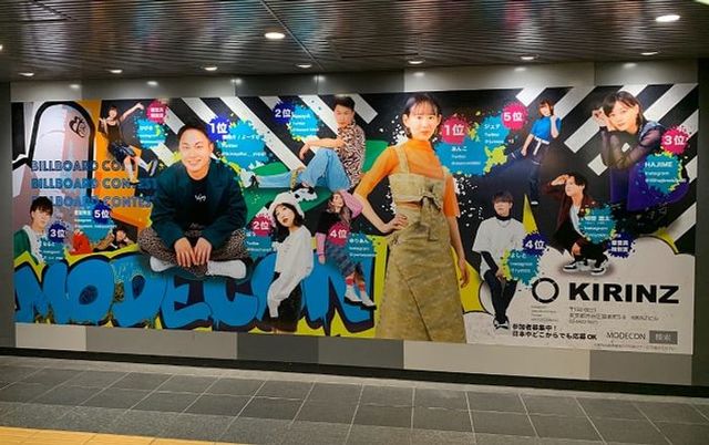 KIRINZが展開するモデルコンテスト「MODECON」が、渋谷駅構内に駅貼りポスター広告を掲出しました。SNS投票で審査される注目イベントの上位モデルを掲載し、若年層へのコンテスト認知拡大を狙っています。