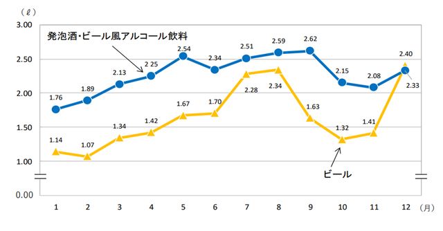 「暑い時に飲むキンキンに冷えたビールがおいしい!」と言われれば、イメージが付く方も多いかもしれませんね。実際に数値傾向としても現れているようです。