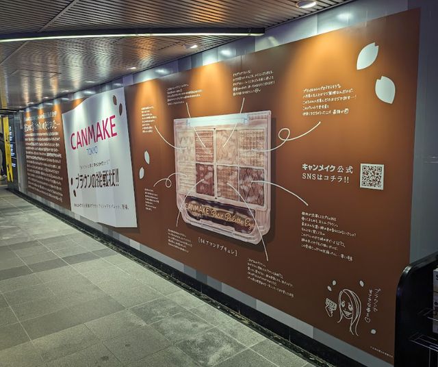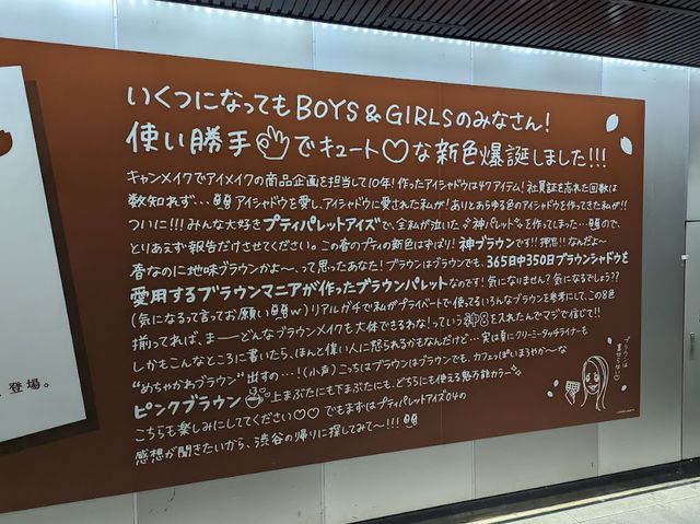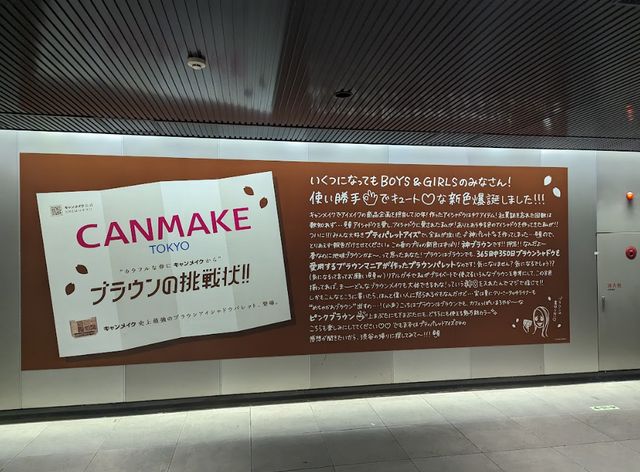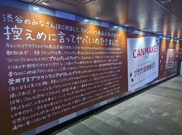 キャンメイク「ブラウンパレッド」の広告。渋谷駅内2箇所で展開されました。