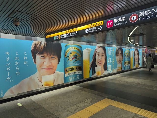 駅構内2箇所のサイネージで広告が展開され、うち1箇所は柱のフルラッピングを行うなどビジュアルにこだわった展開が特徴的でした。