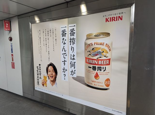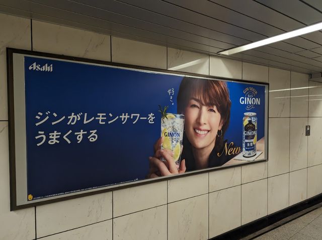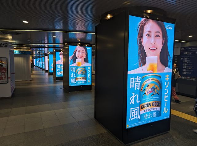 先週発表されたキリンビールの新商品「晴れ風」の広告を始め、ジョニーウォーカー、GINON(ジノン)、サントリー生ビールと様々な商品の広告が展開されていました。先週も「#環奈と乾杯」をテーマにしたアサヒドライクリスタルの広告が渋谷駅複数個所で展開していましたが、各社この春先のタイミングで出稿量を増やしている印象があります。