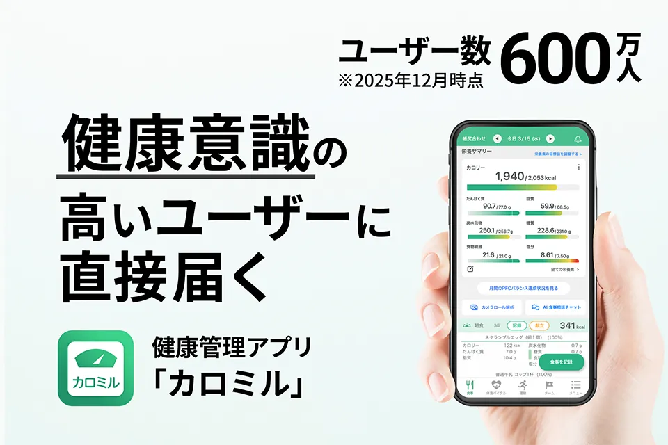 【最新版】健康志向・ダイエットユーザーに届く【商品PR・サンプリングに強い】『健康管理アプリ:カロミル』