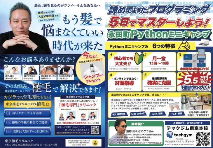 A4チラシを4社の広告を埋めるシェアチラシです。