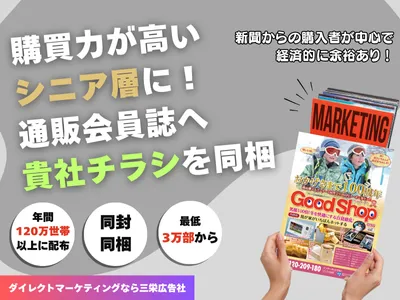 新聞購読者で新聞広告で購入したシニアが会員になっているため、60代以上のお金の余裕が有る方に商品とサービスを訴求できます。