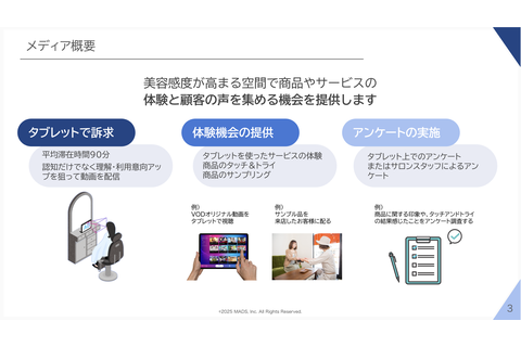 全国の美容室(サロン)に置かれているOCTAVE(オクターヴ)by MADSは、インタラクティブにコンテンツに接触できる美容サロンに特化したタブレット型デジタルサイネージメディアです。