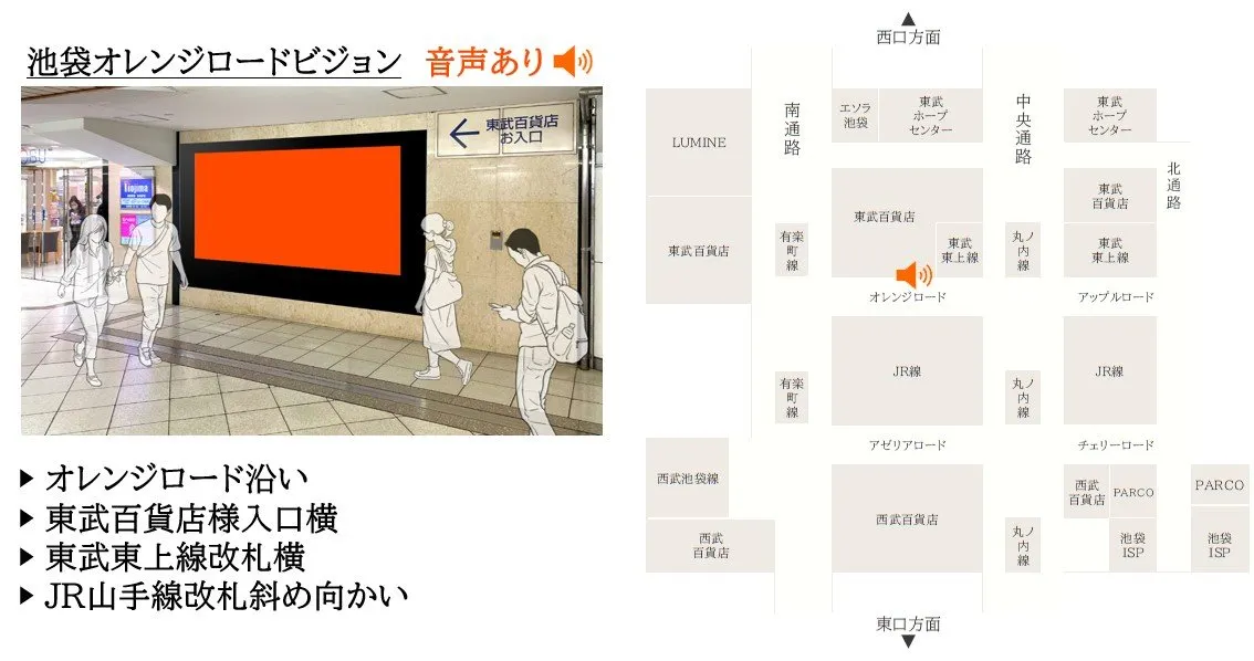 | 場所 | 池袋駅・地下通路 JR ・東武 乗り換え改札口横・百貨店入口横 |