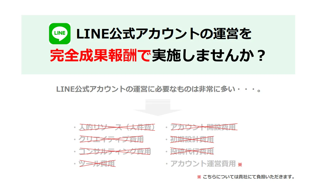 LINE公式アカウントの運営を完全成果報酬で実施しませんか?