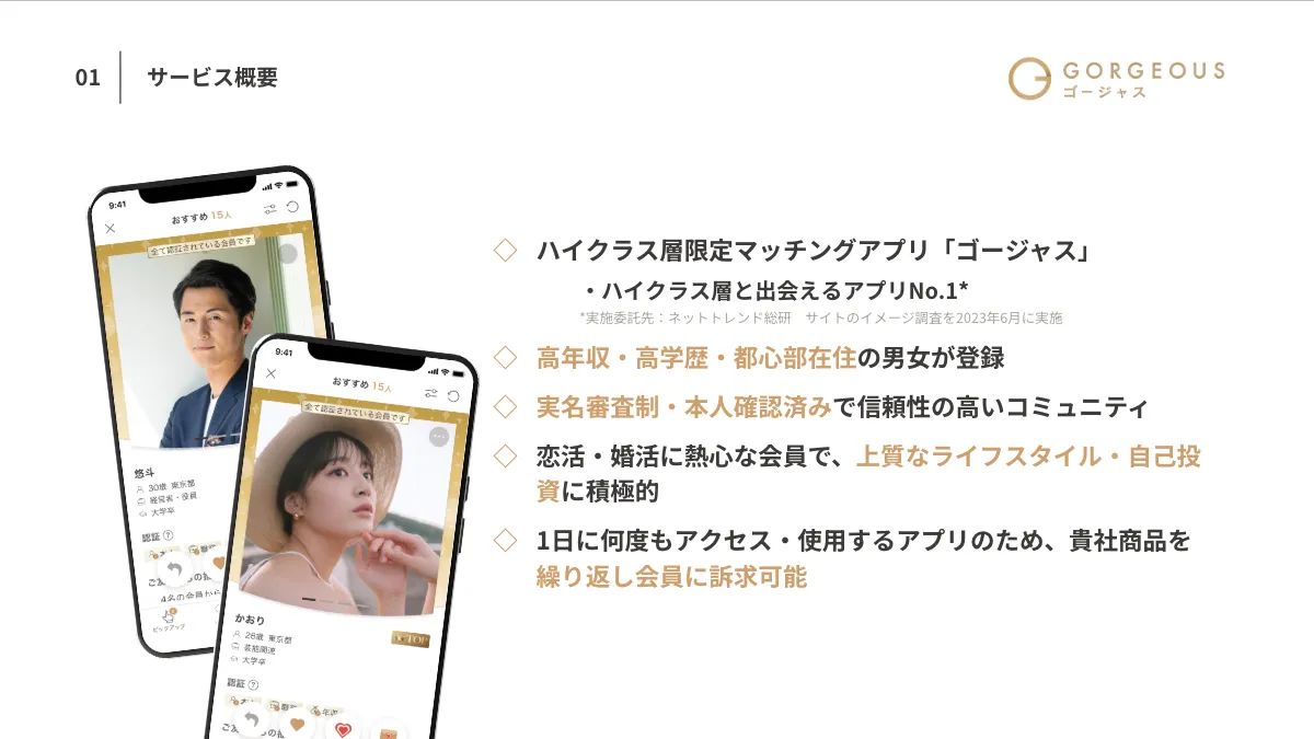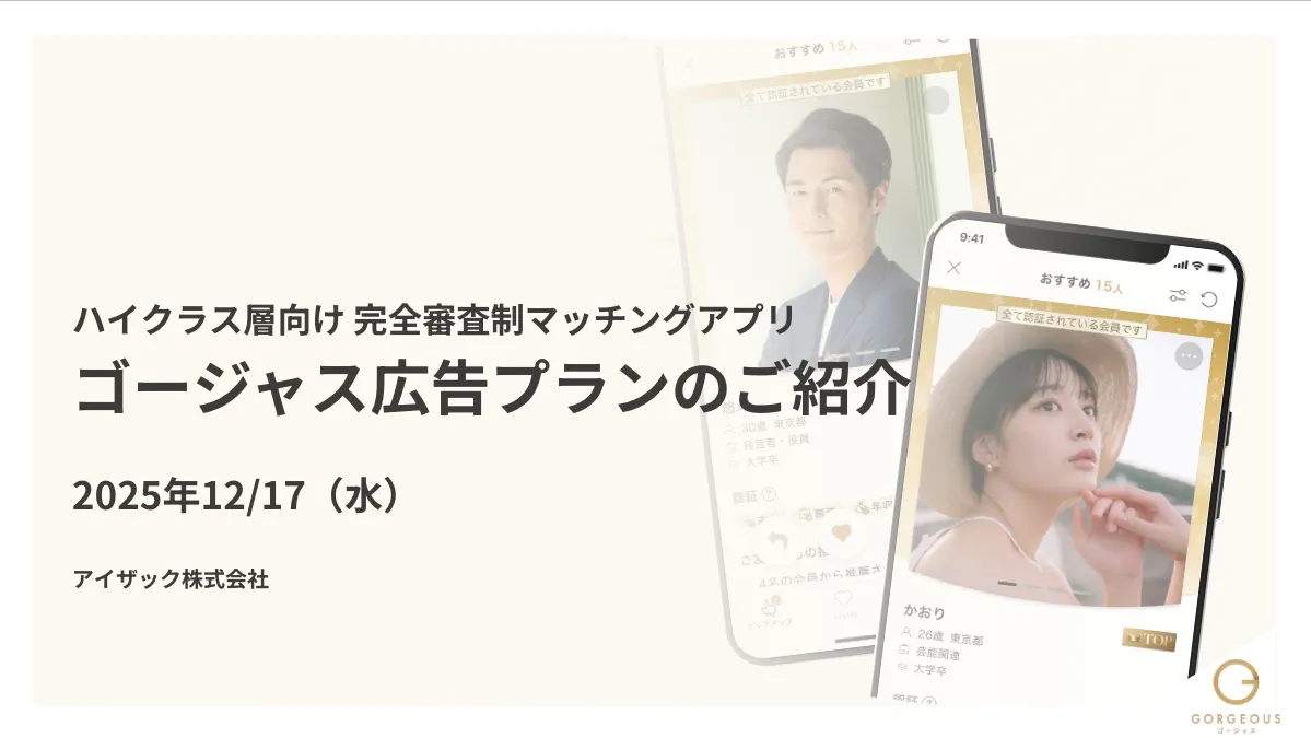 【富裕層×マッチングアプリ】 審査制マッチングアプリ「ゴージャス」広告プラン資料『ゴージャス(GORGEOUS)』