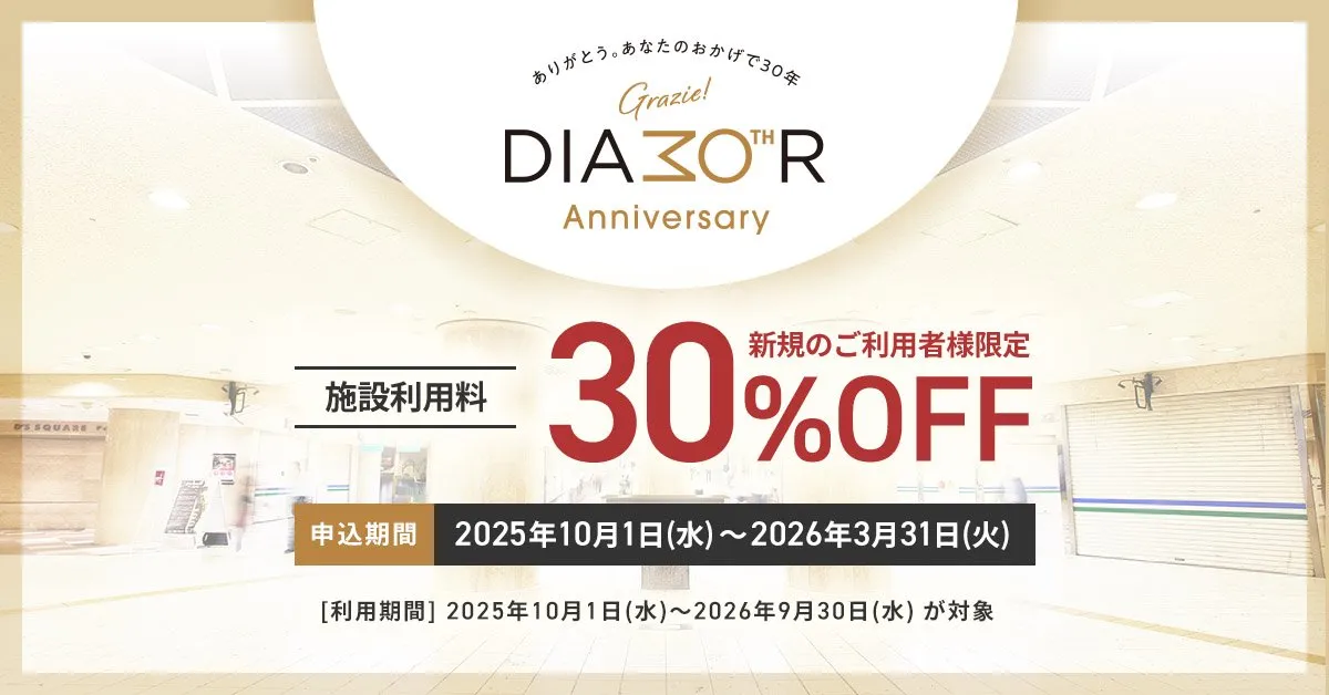 大阪・梅田の地下街ディアモール大阪内にある「ディーズスクエア」は、JR大阪駅や各線梅田駅から徒歩5分圏内の好立地が魅力です。地下のため天候に左右されない全天候型屋内広場であり、通勤・通学、ショッピング、観光など【毎日33万人】の生活動線に面しています。視認性が高く、平日のピーク時には【1時間に5万人】もの人々が通過する高い集客力を誇ります。