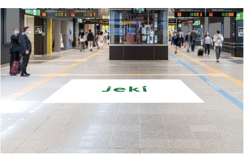 杜の陽だまりガレリア(東西自由通路)へ向かう在来線東口改札前に設置するフロアシートです。