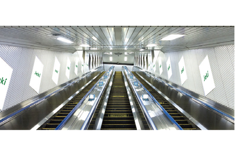 エスカレーター壁面両側で32枚B1ポスターを掲出できます。
