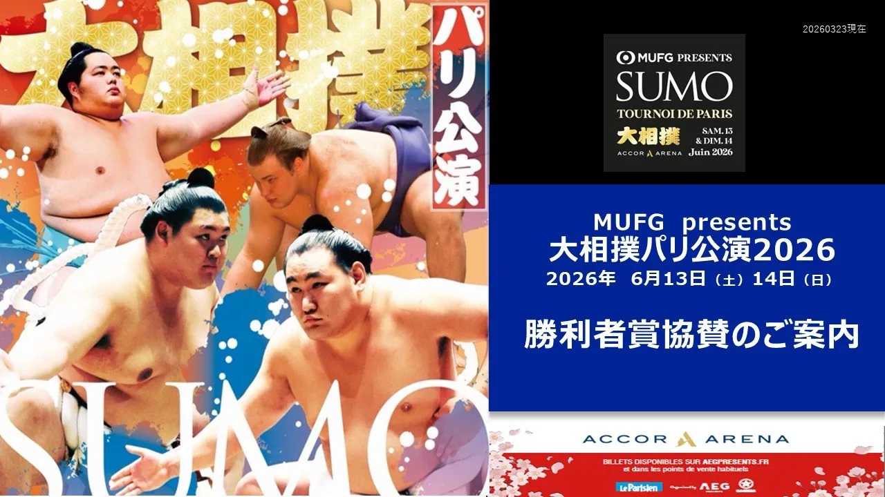 大相撲パリ公演2026 勝利者賞協賛 募集中『大相撲パリ公演2026』
